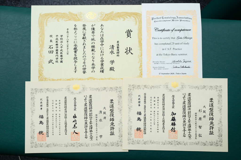 柔道整復師等の国家資格やその他にも各種資格を取得